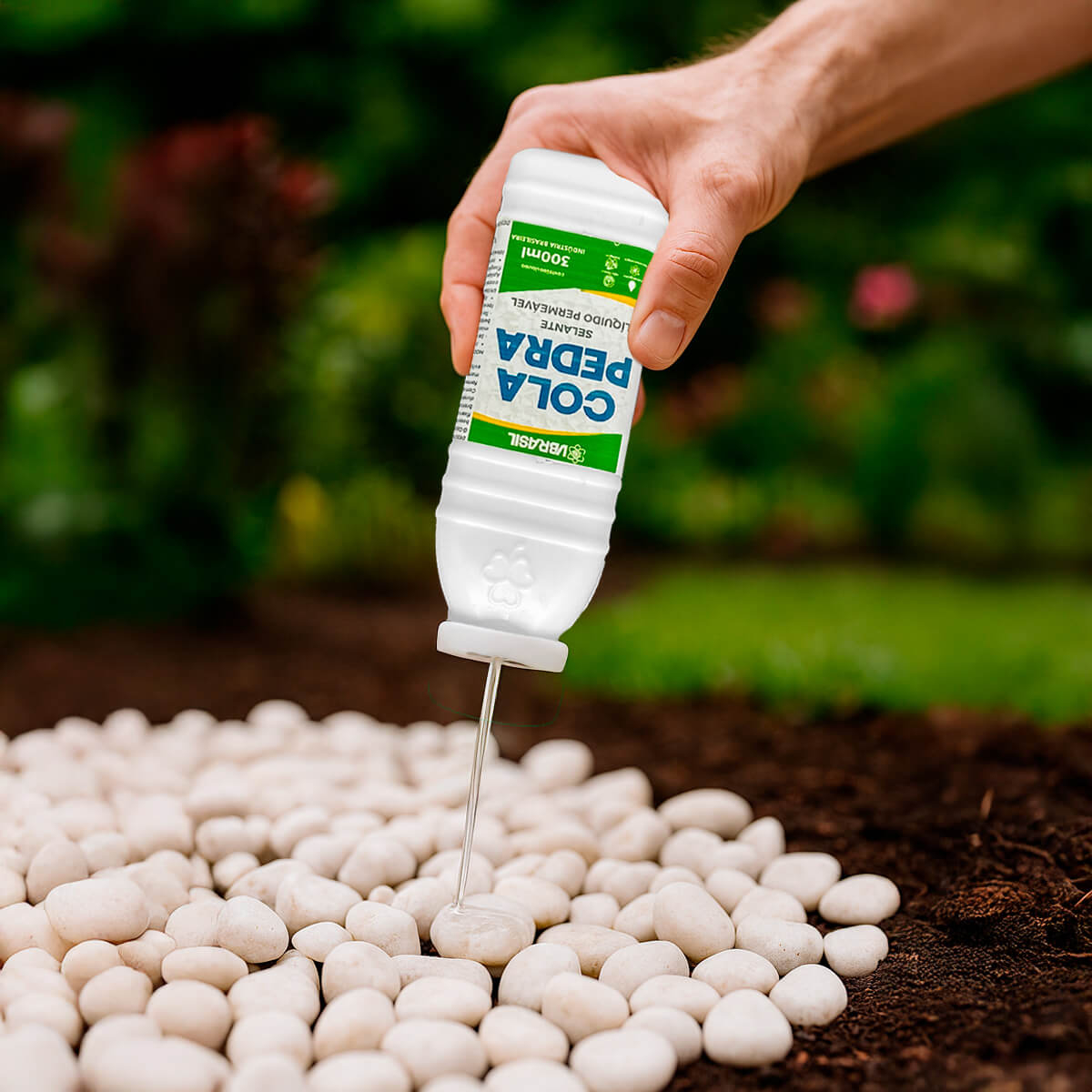 A Cola Pedra VBrasil, desenvolvida com selante nanotecnológico de alta performance, é a solução ideal para quem deseja fixar, proteger e valorizar pedras decorativas de jardim com praticidade e eficiência. Sua fórmula cria uma película transparente, resistente e duradoura, que mantém o aspecto natural das pedras, evita deslocamentos e proporciona um acabamento impecável ao paisagismo. Compatível com pedras brancas, seixos e pedriscos, pode ser aplicada em pedras soltas, através de mistura em betoneira, ou em pedras já posicionadas, por pulverização direta. Além disso, seu alto rendimento garante cobertura ampla com apenas duas demãos, oferecendo excelente custo-benefício. Com 300ml de conteúdo líquido, é a solução prática e eficiente para quem busca fixação segura e acabamento de qualidade em trabalhos com pedras e materiais porosos.