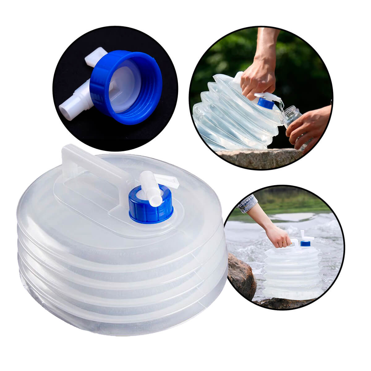 Com design dobrável tipo fole, o galão pode ser facilmente armazenado quando vazio. O sistema de torneira com vazão regulável oferece controle total da saída de água, tornando-o ideal para camping, trilhas, viagens, churrascos e uso em veículos.