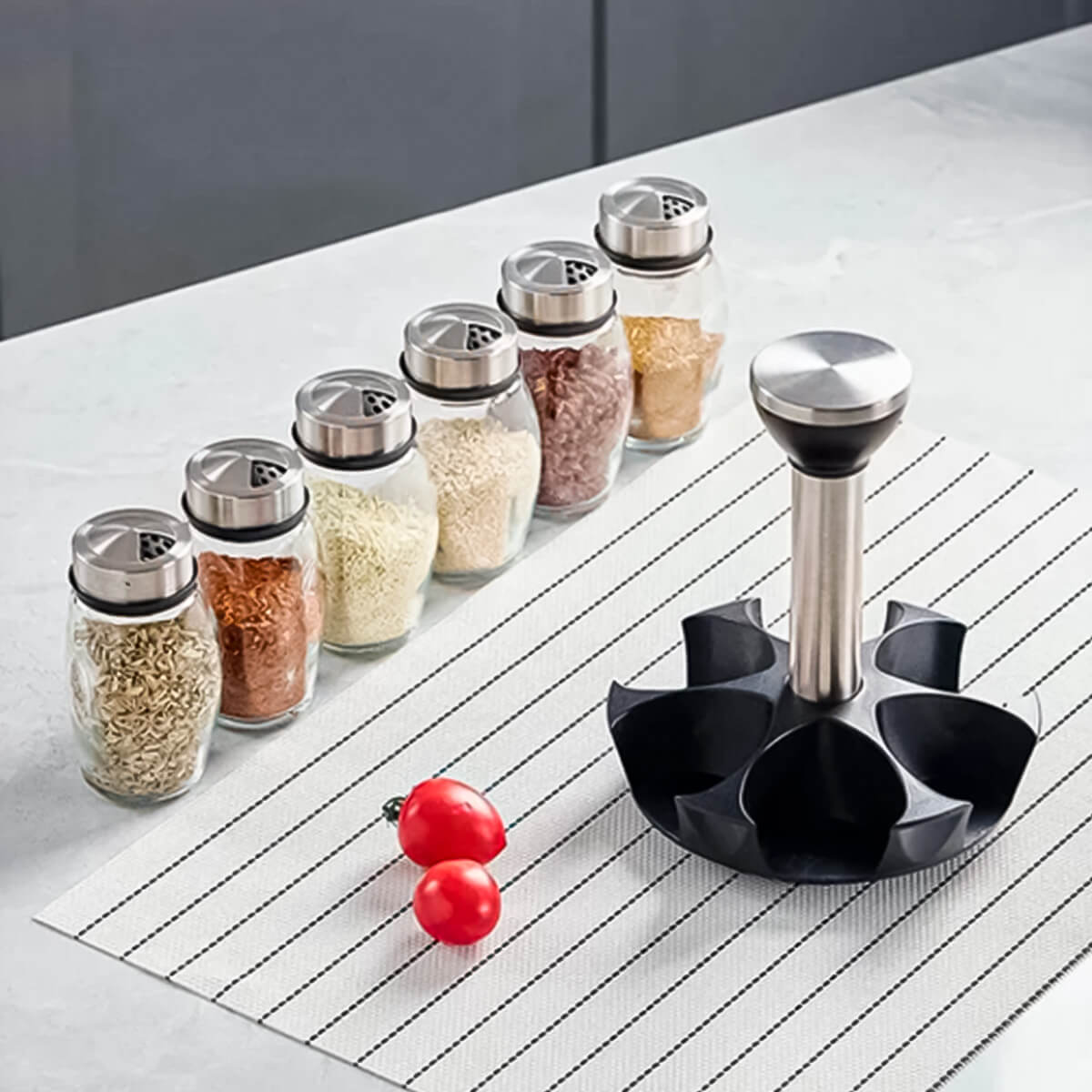 Mantenha sua cozinha organizada e elegante com este kit porta temperos. Composto por 6 frascos de vidro de 100ml, ele oferece praticidade para armazenar seus temperos favoritos com estilo. Acompanha uma base giratória, facilitando o acesso aos condimentos de forma rápida e eficiente. Ideal para otimizar o espaço e manter os temperos sempre à mão. Design moderno e compacto, perfeito para qualquer tipo de cozinha.